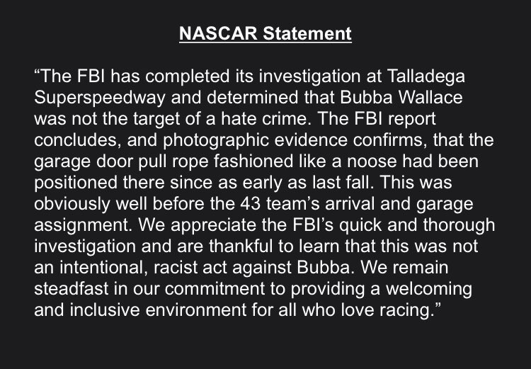 Nascar driver bubba wallace tweeted out a statement on wednesday about the supposed noose found in his garage saying that he s relieved to know it wasn t meant for him but embarrassed by the. This presented a rather unusual scenario because it is. Share this on twitter.